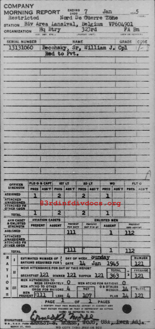 Morning report HQBTRY/323FA for January 7, 1945