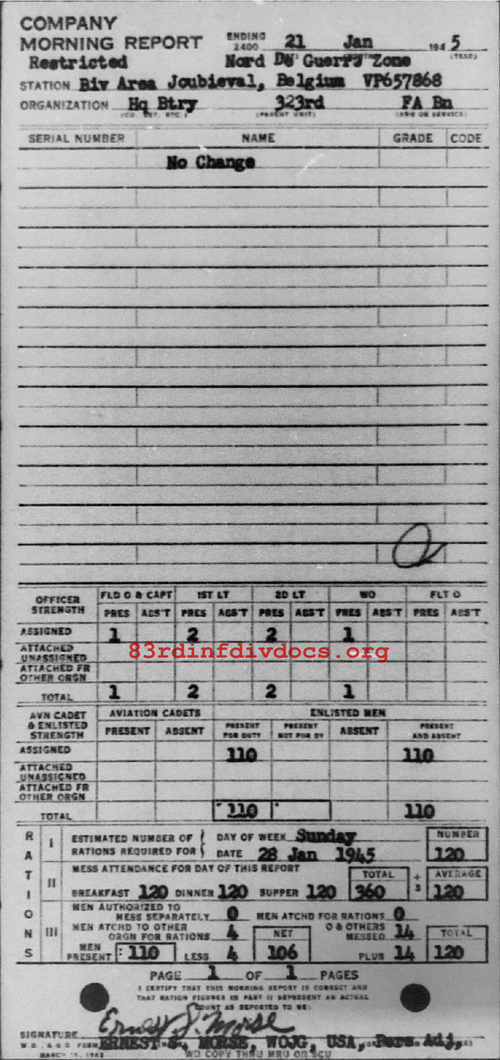 Morning report HQBTRY/323FA for January 21, 1945