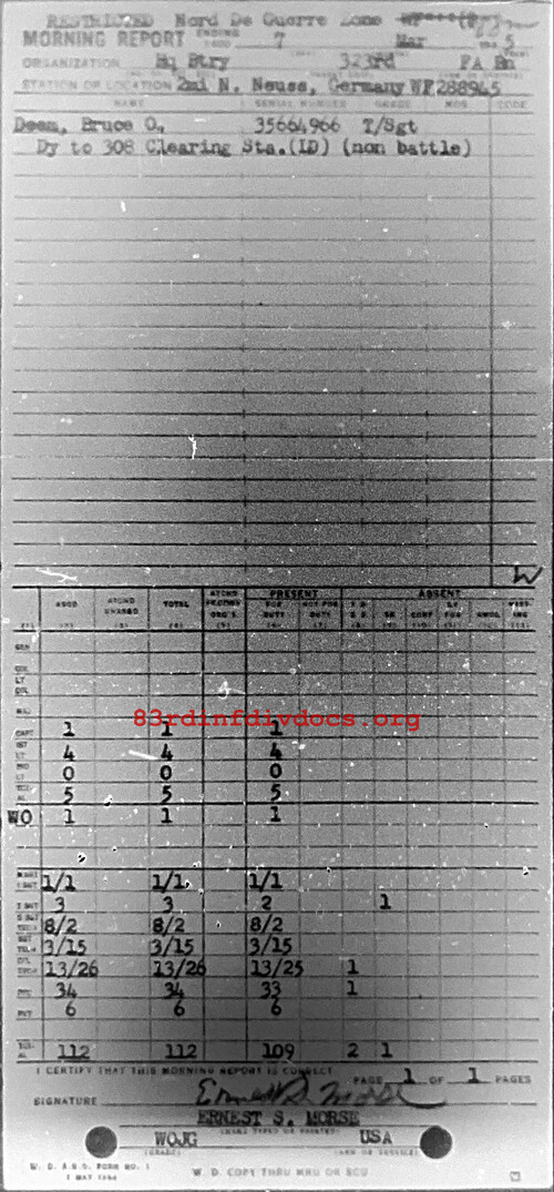 Morning report HQBTRY/323FA for March 7, 1945