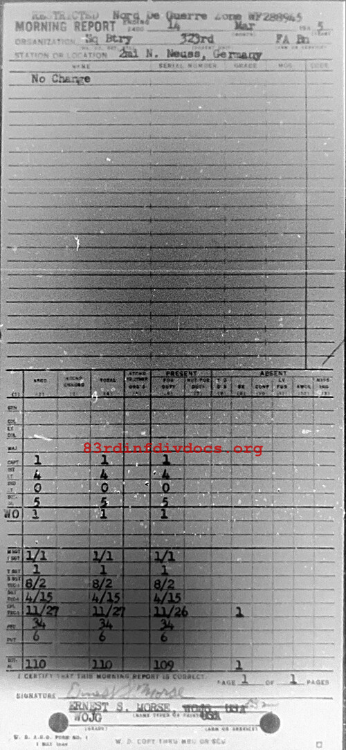 Morning report HQBTRY/323FA for March 14, 1945