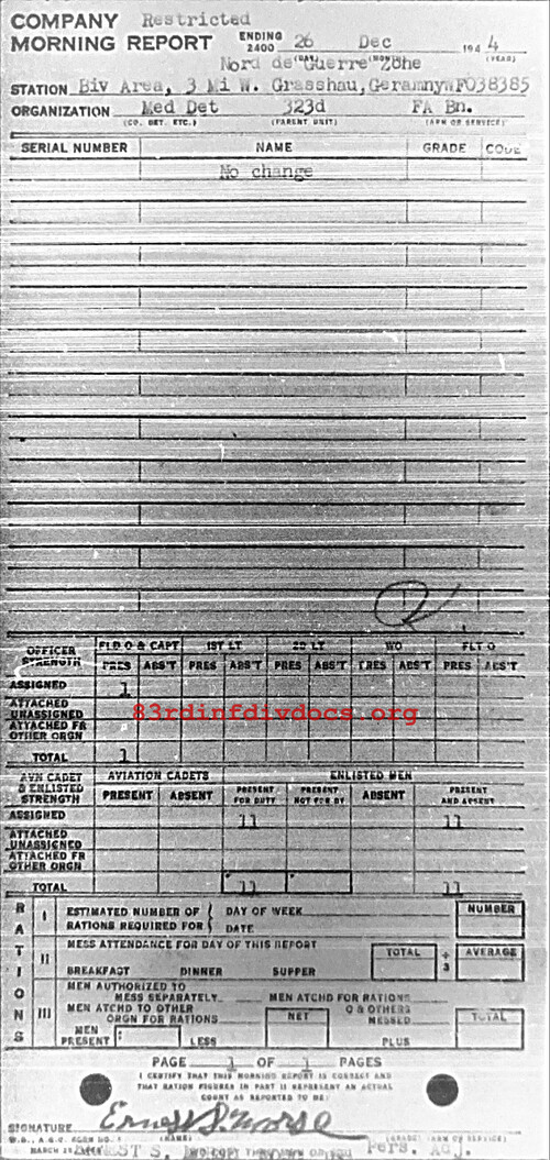 Morning report MEDDET/323FA for December 26, 1944