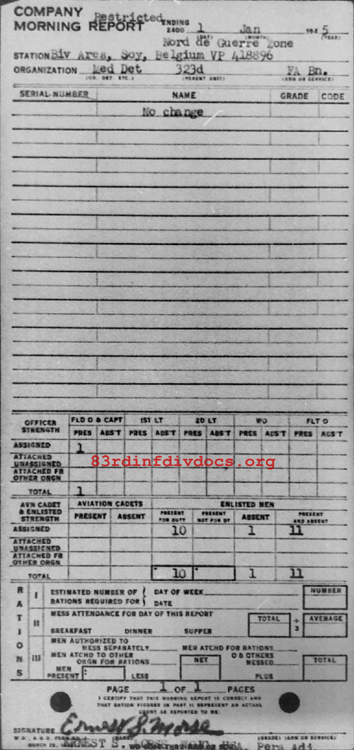 Morning report MEDDET/323FA for January 1, 1945