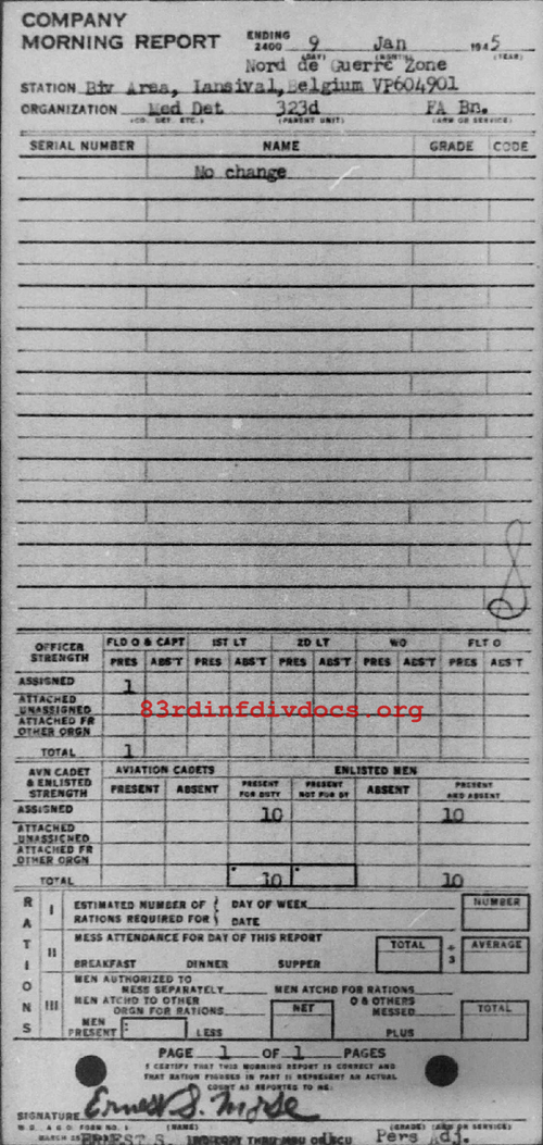 Morning report MEDDET/323FA for January 9, 1945