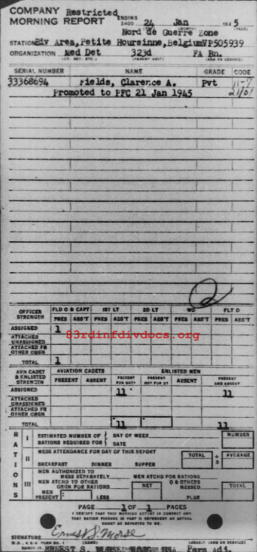 Morning report MEDDET/323FA for January 24, 1945