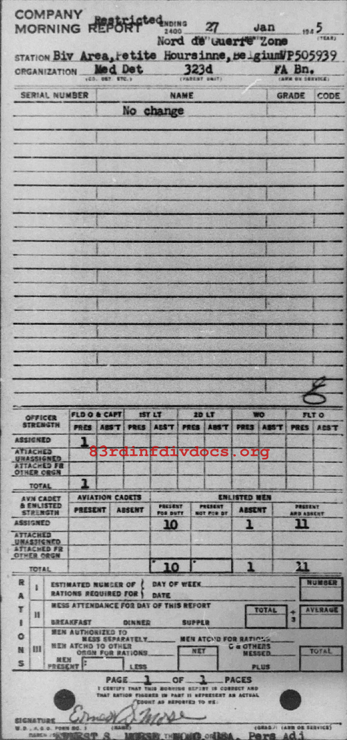Morning report MEDDET/323FA for January 27, 1945