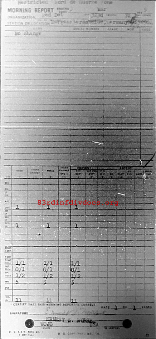 Morning report MEDDET/323FA for March 3, 1945