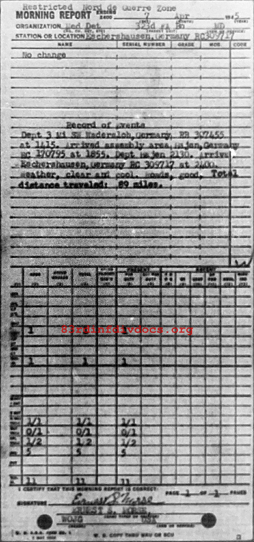 Morning report MEDDET/323FA for April 7, 1945