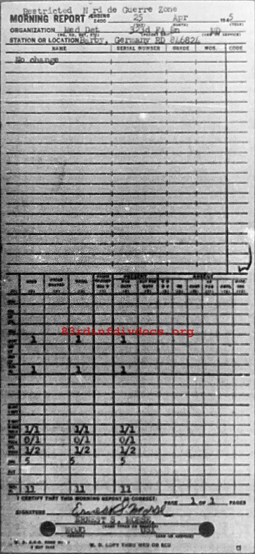 Morning report MEDDET/323FA for April 25, 1945