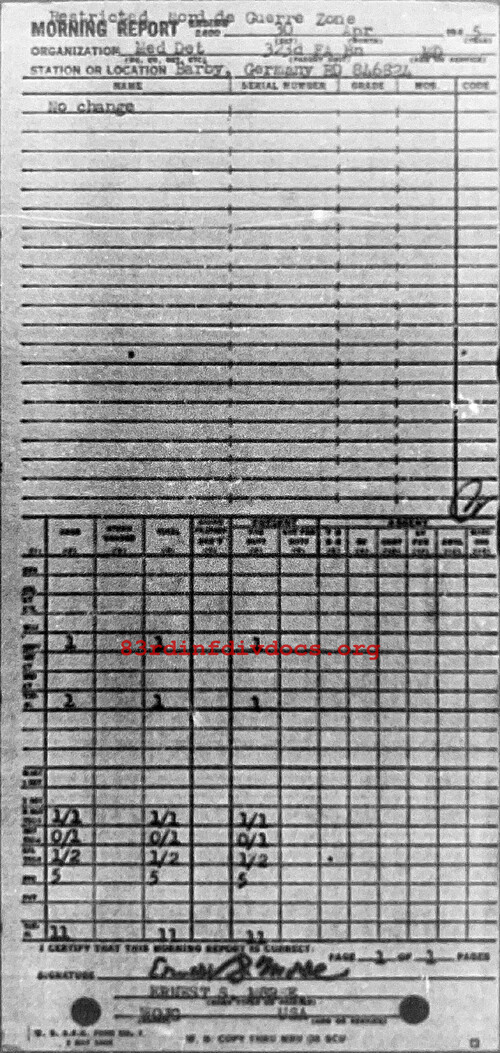 Morning report MEDDET/323FA for April 30, 1945