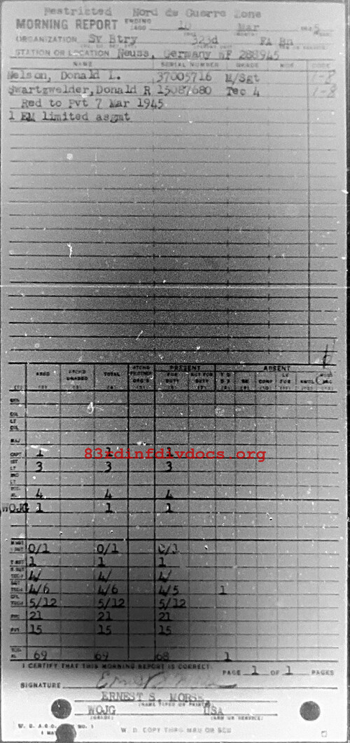 Morning report SERBTRY/323FA for March 10, 1945