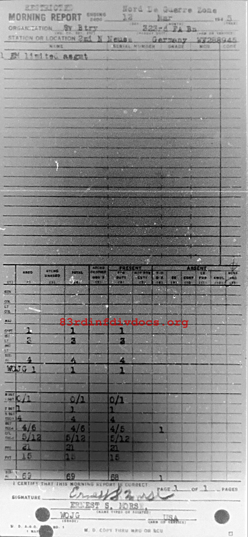 Morning report SERBTRY/323FA for March 12, 1945