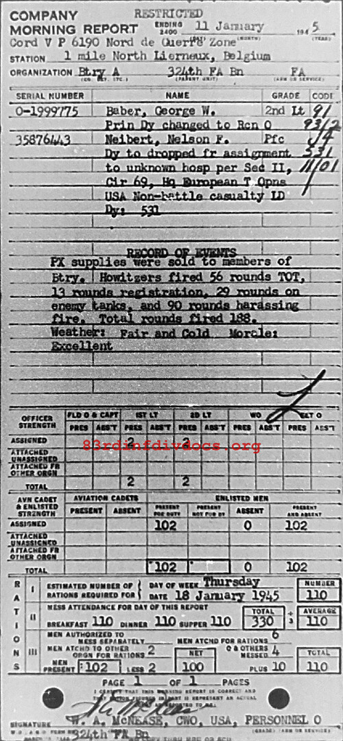 Morning report A/324FA for January 11, 1945