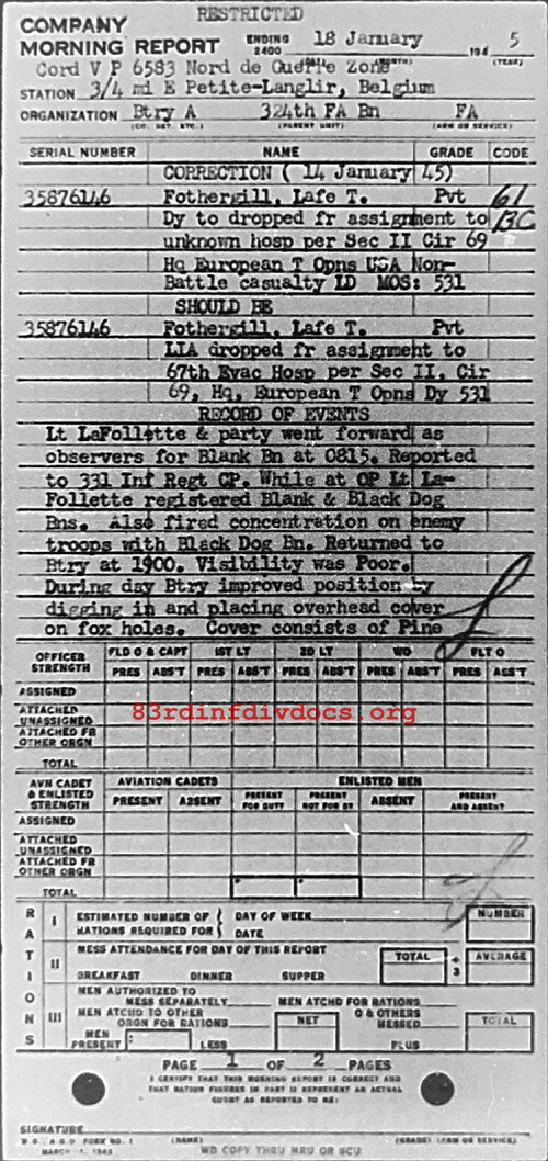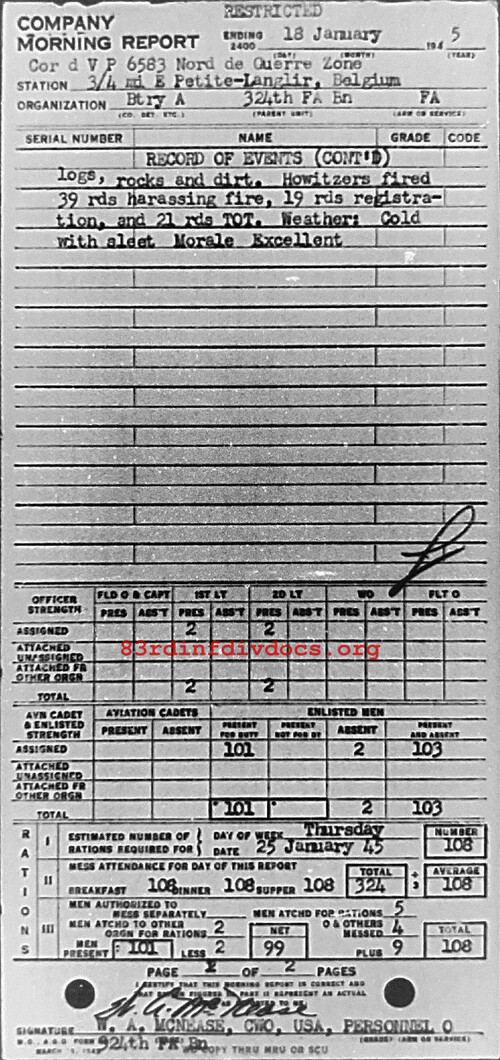 Morning report A/324FA for January 18, 1945