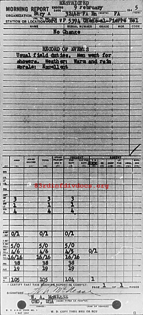 Morning report A/324FA for February 9, 1945