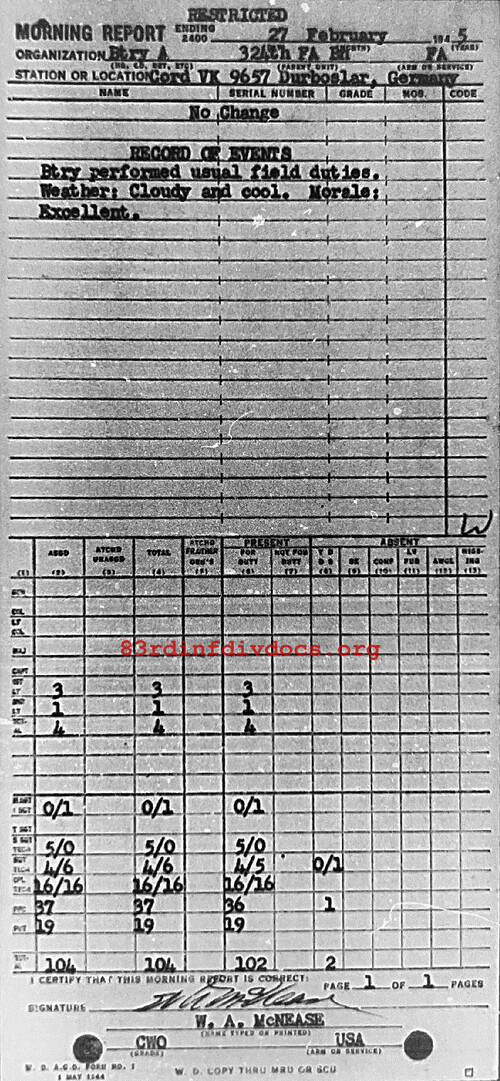 Morning report A/324FA for February 27, 1945