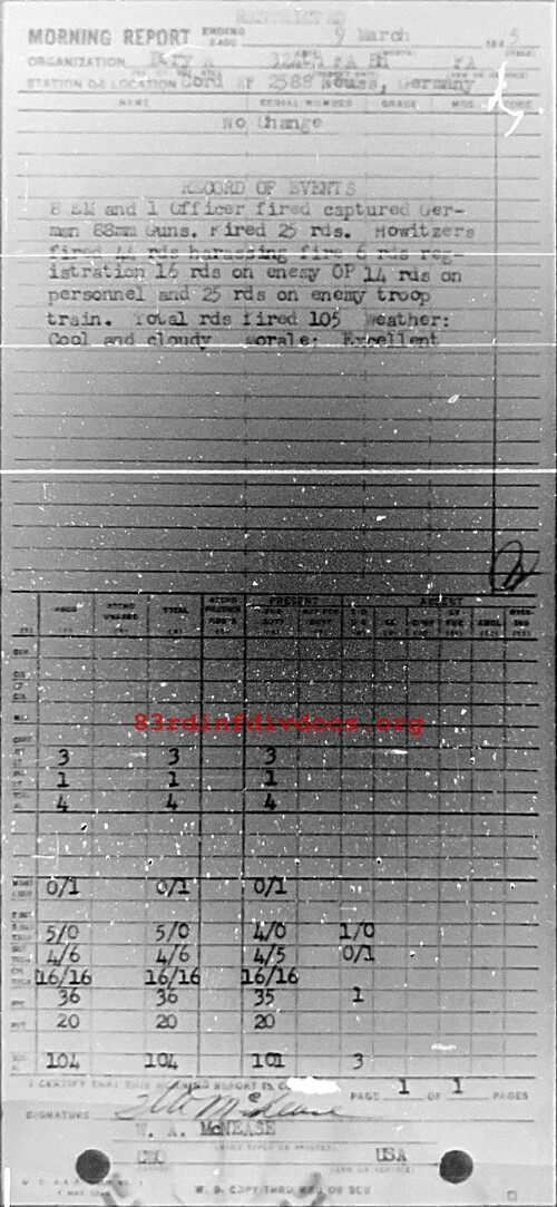 Morning report A/324FA for March 9, 1945