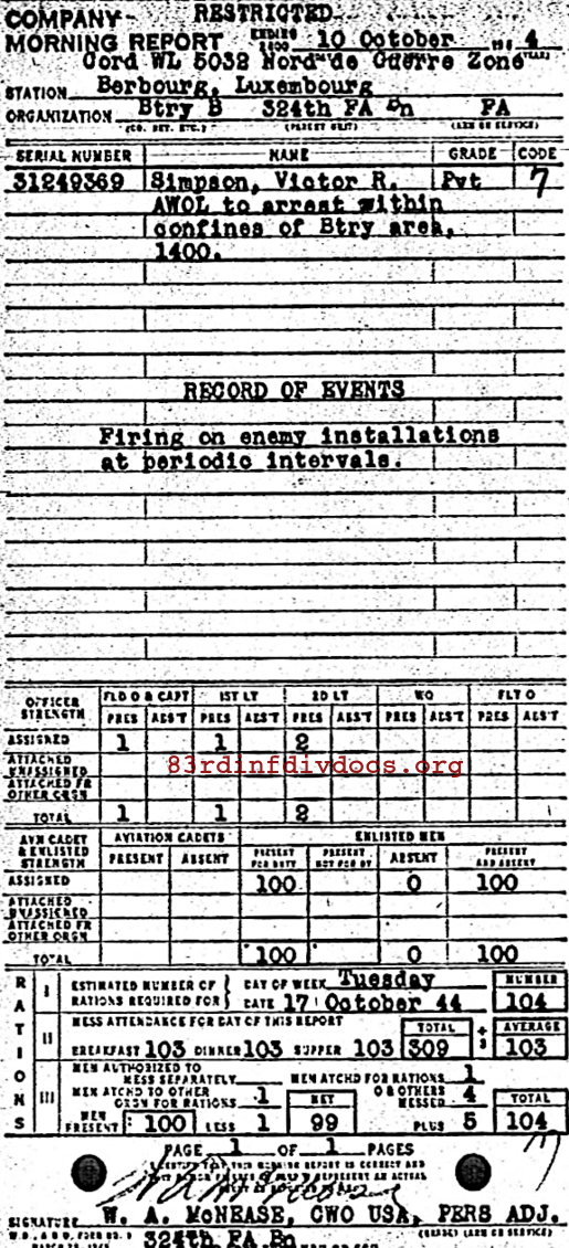 Morning report B/324FA for October 10, 1944