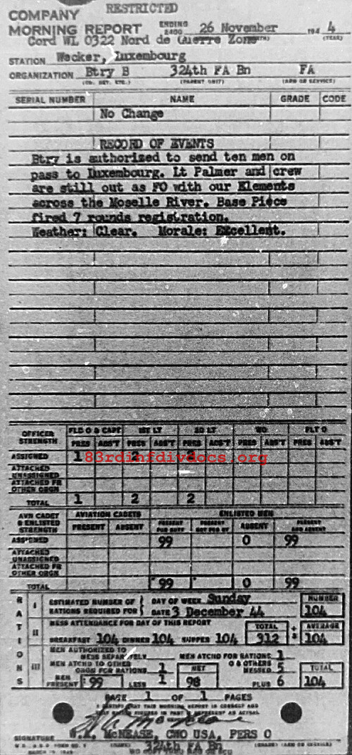 Morning report B/324FA for November 26, 1944