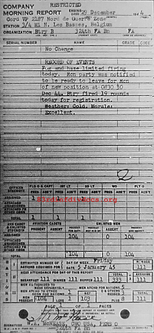 Morning report B/324FA for December 29, 1944