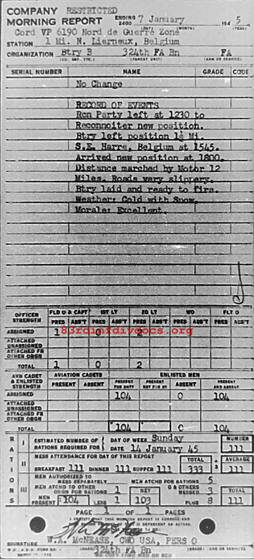 Morning report B/324FA for January 7, 1945