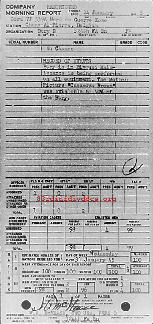 Morning report B/324FA for January 24, 1945