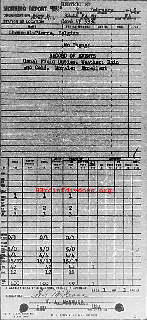 Usual field duties. Weather: Rain and cold. Morale: Excellent.