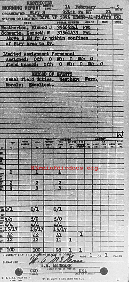 Usual field duties. Weather: Warm. Morale: Excellent.