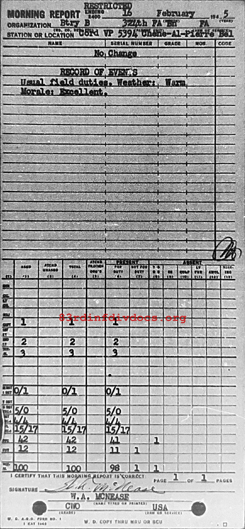 Morning report B/324FA for February 16, 1945