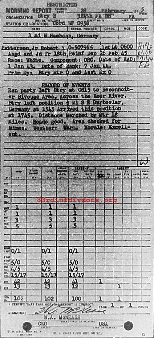 Morning report B/324FA for February 28, 1945