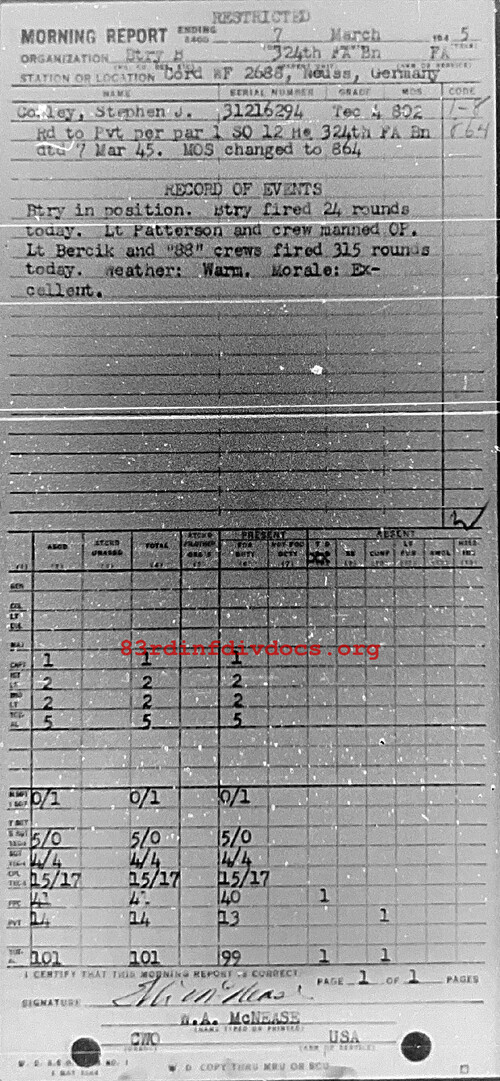Morning report B/324FA for March 7, 1945