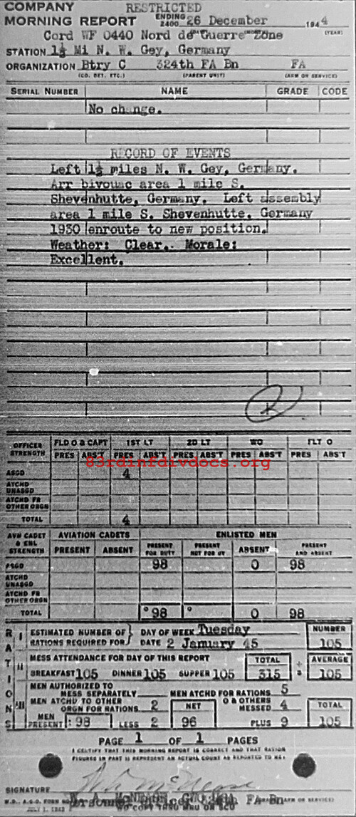 Morning report C/324FA for December 26, 1944