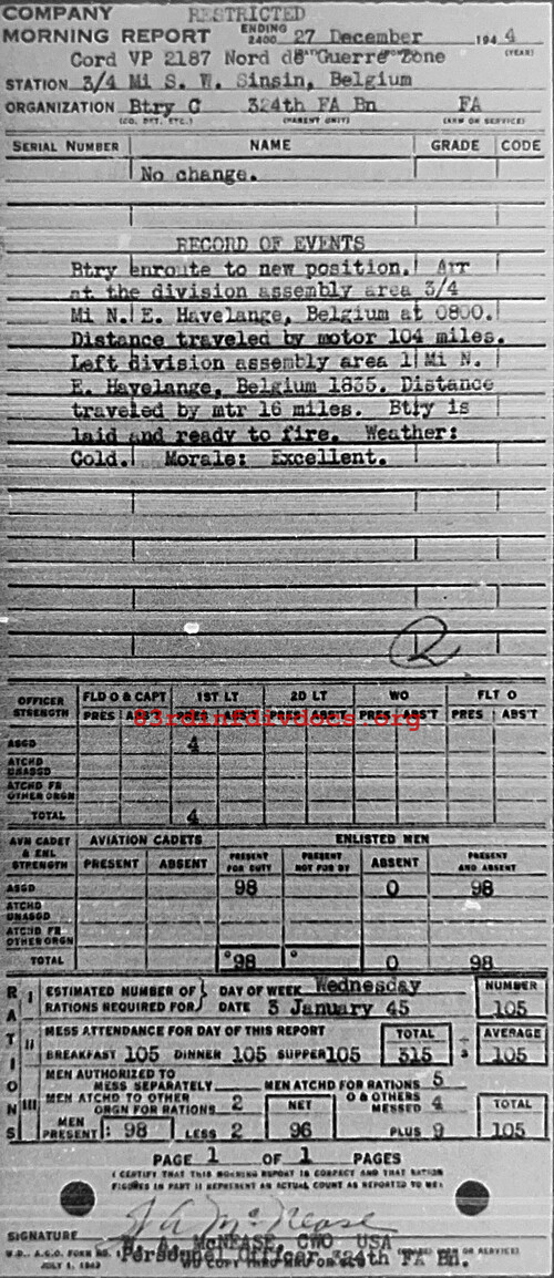 Morning report C/324FA for December 27, 1944