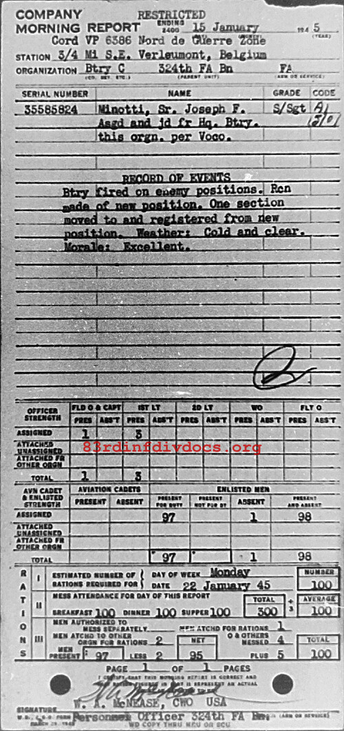 Morning report C/324FA for January 15, 1945