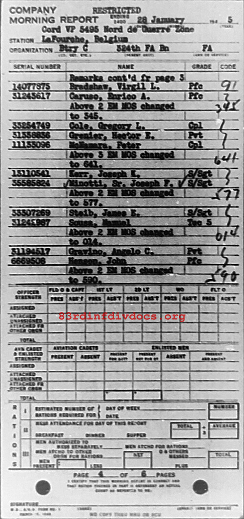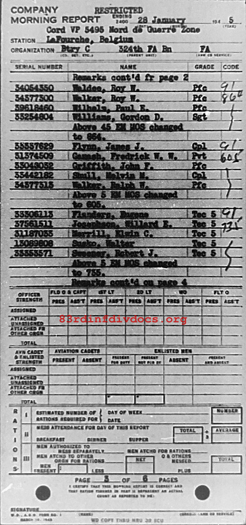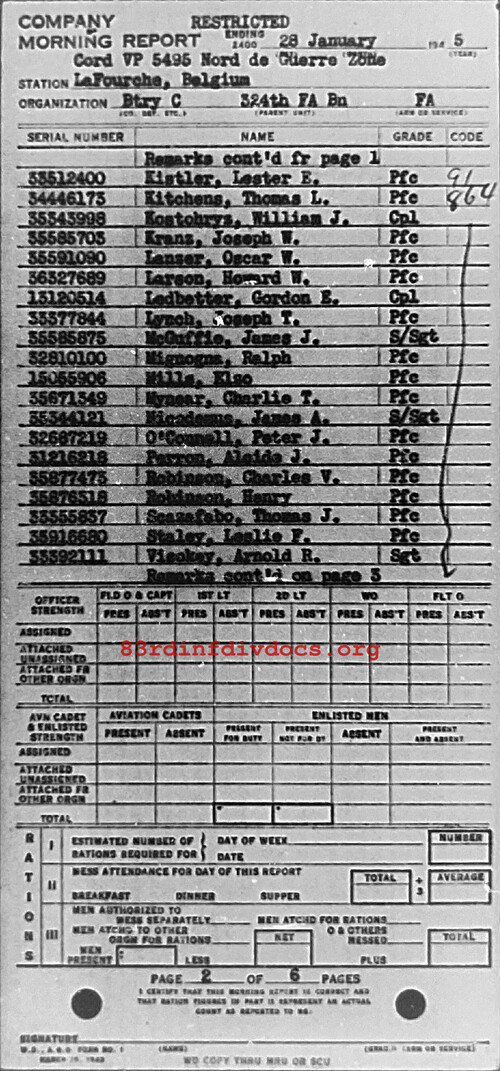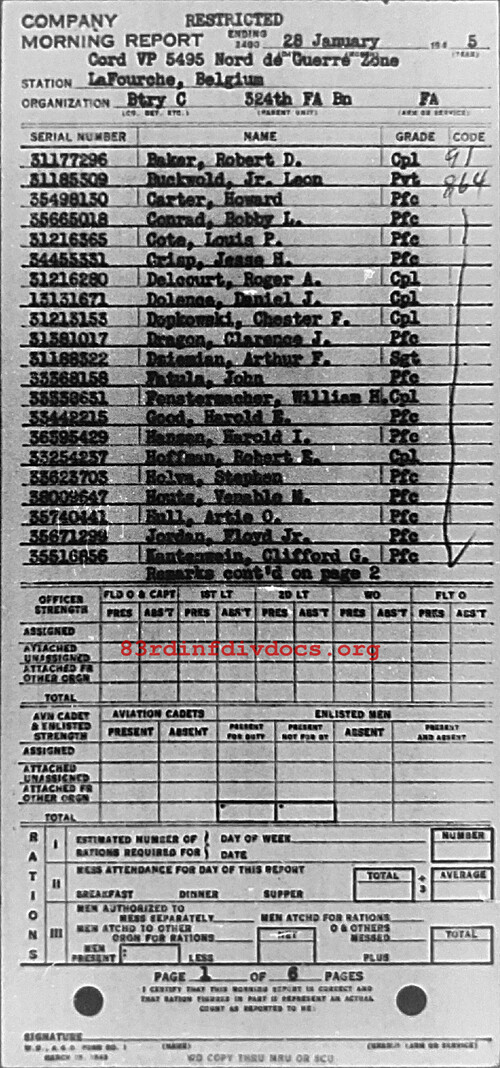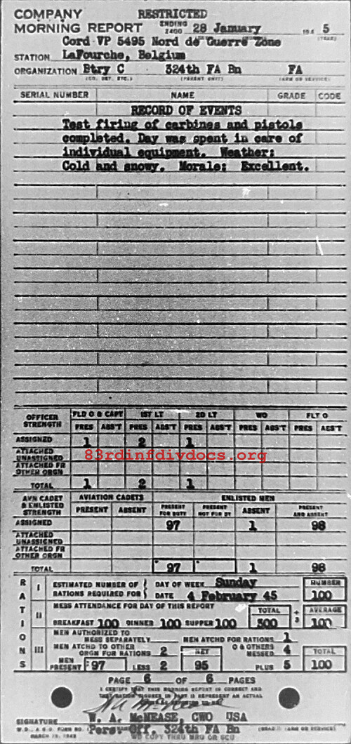 Morning report C/324FA for January 28, 1945
