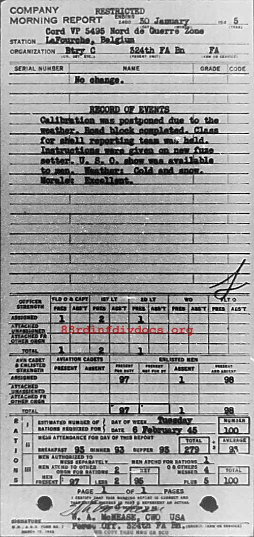 Morning report C/324FA for January 30, 1945