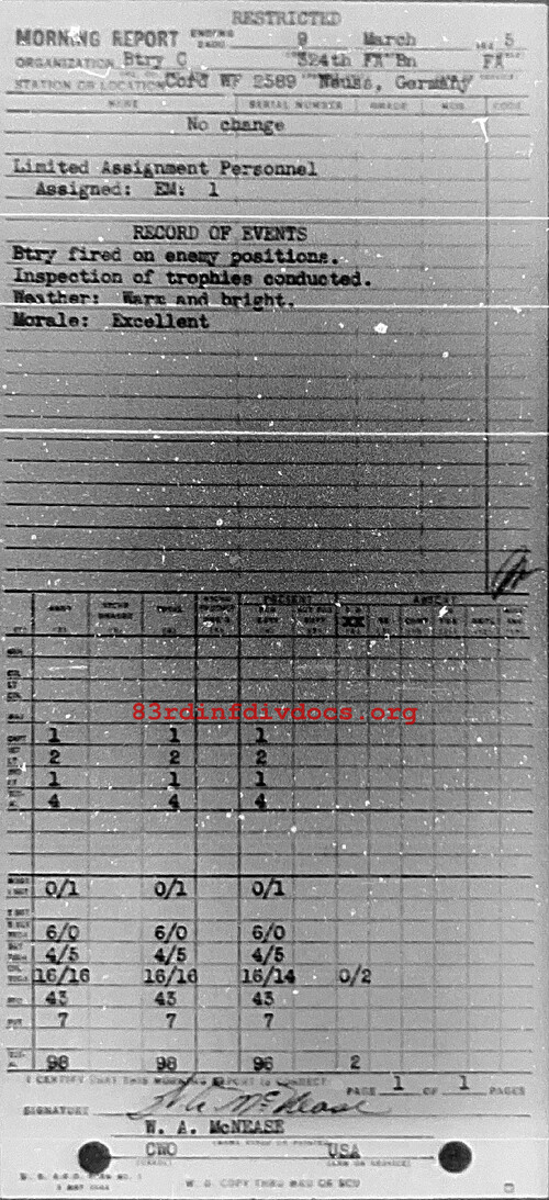 Morning report C/324FA for March 9, 1945