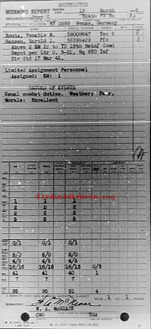 Morning report C/324FA for March 19, 1945