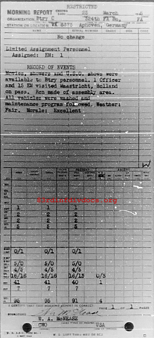 Morning report C/324FA for March 23, 1945
