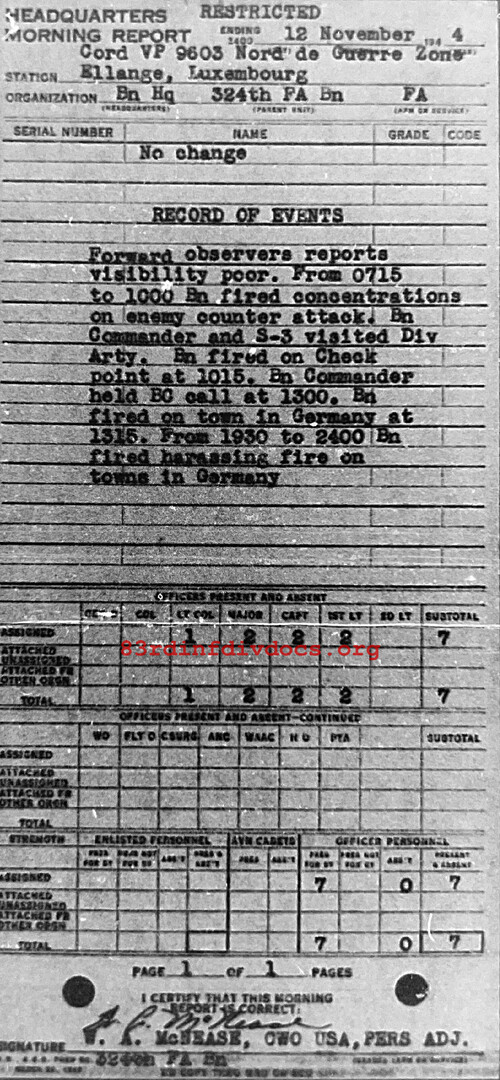 Morning report HQ/324FA for November 12, 1944