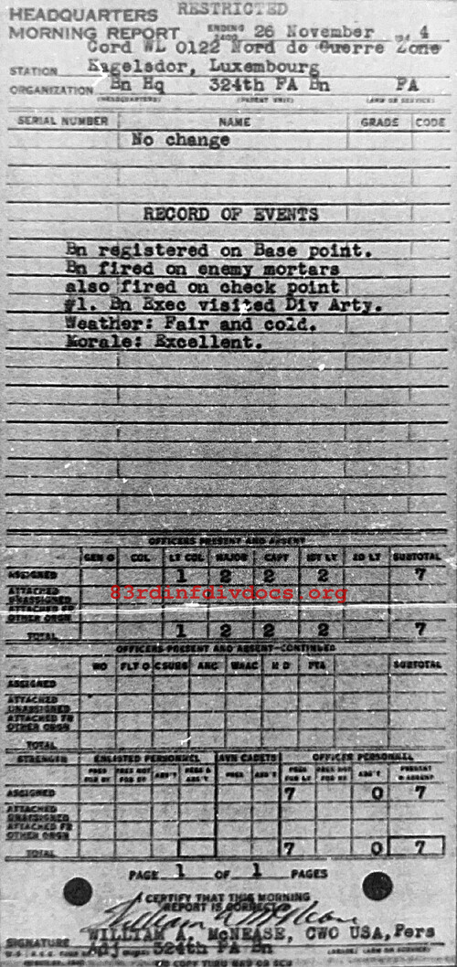 Morning report HQ/324FA for November 26, 1944