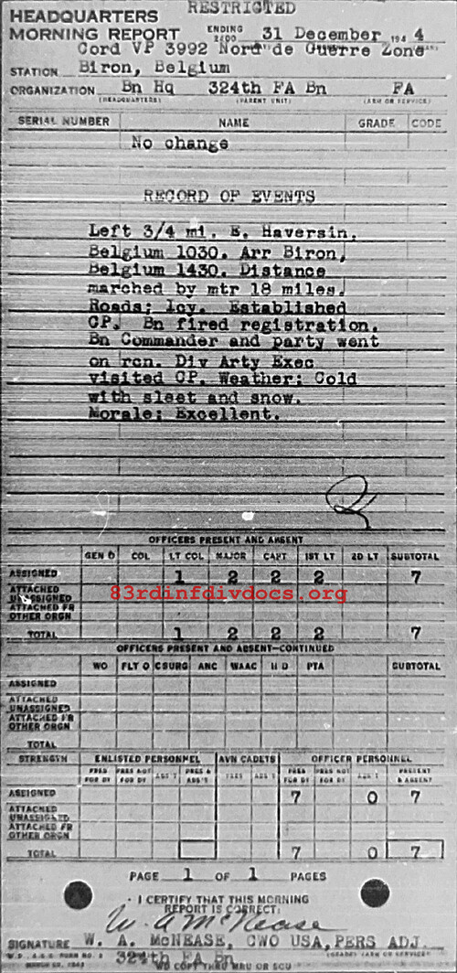 Morning report HQ/324FA for December 31, 1944