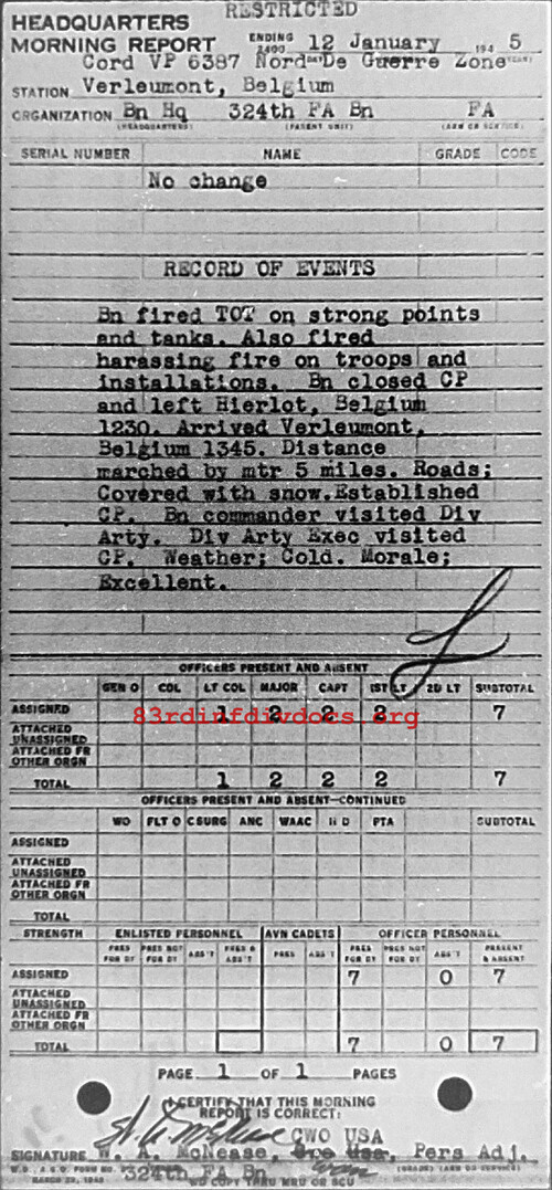 Morning report HQ/324FA for January 12, 1945