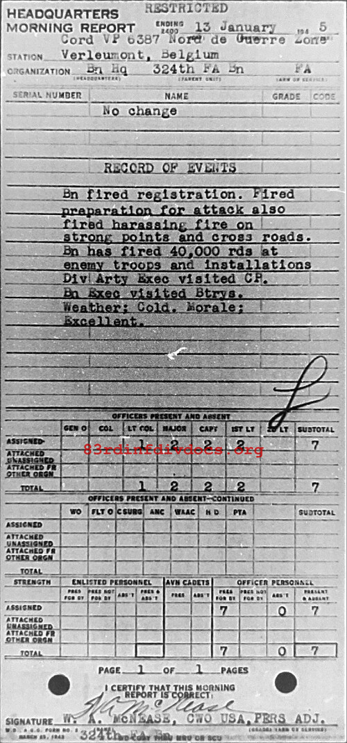 Morning report HQ/324FA for January 13, 1945