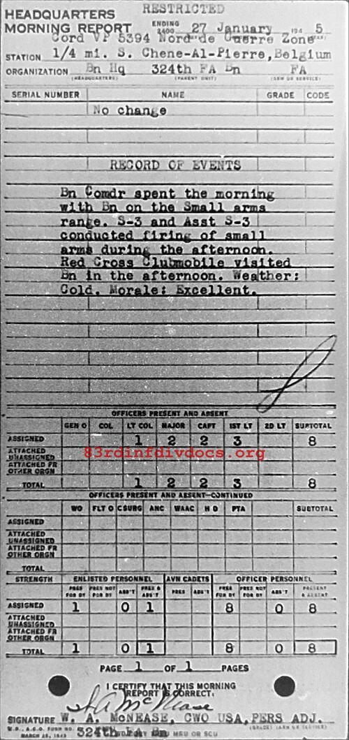 Morning report HQ/324FA for January 27, 1945