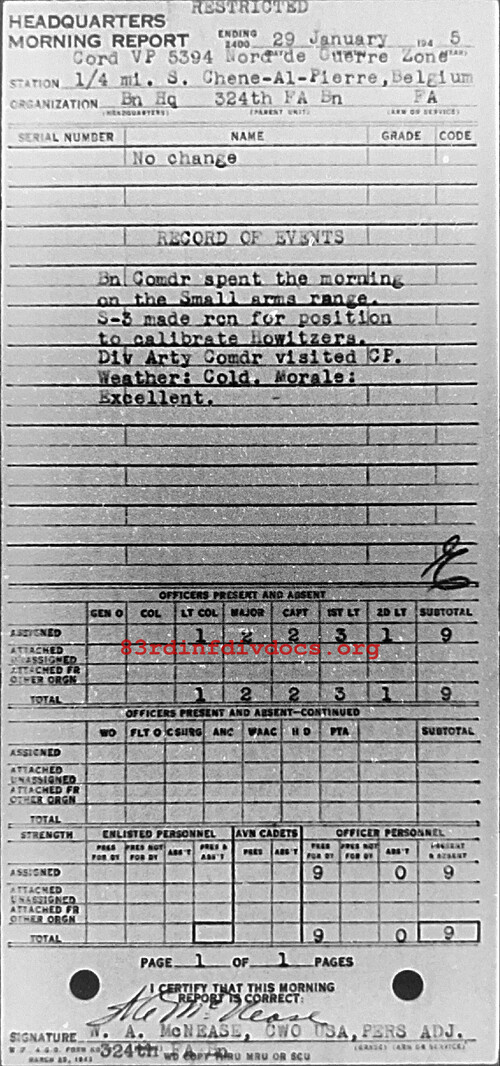 Morning report HQ/324FA for January 29, 1945