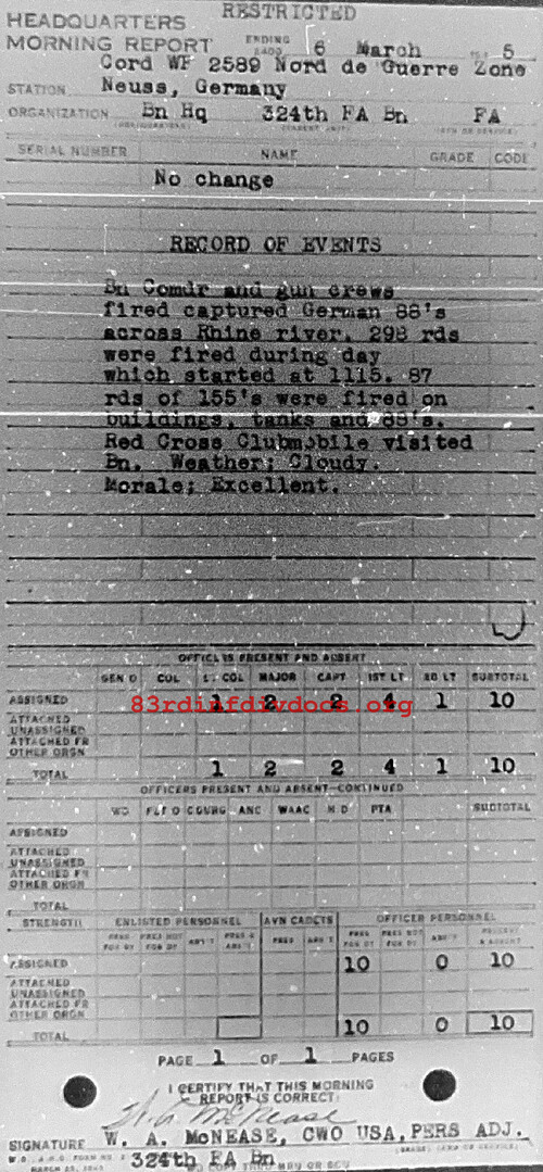 Morning report HQ/324FA for March 6, 1945