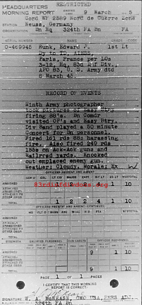 Morning report HQ/324FA for March 9, 1945