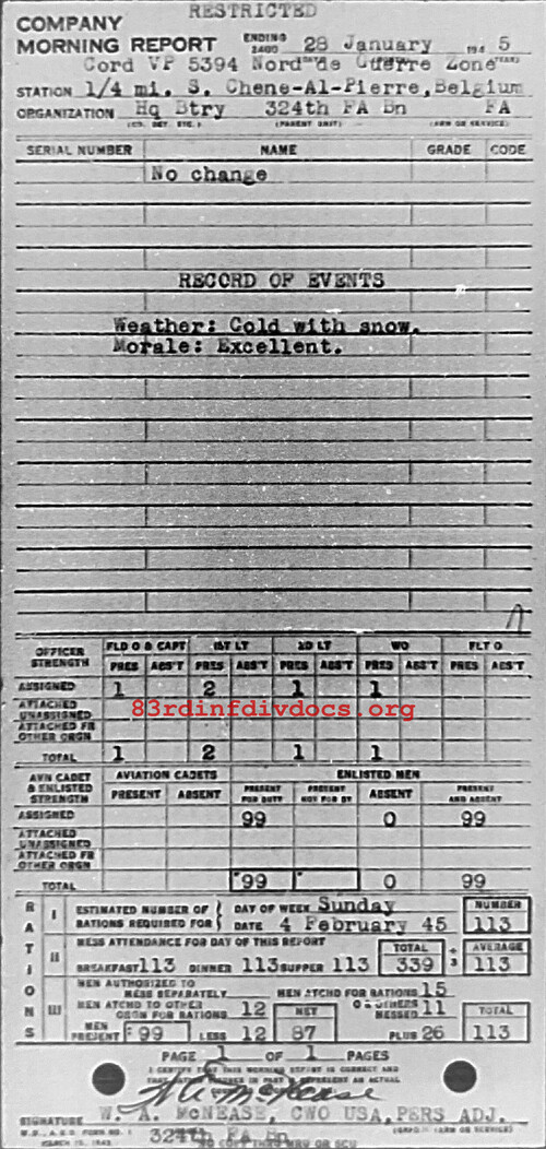 Morning report HQBTRY/324FA for January 28, 1945