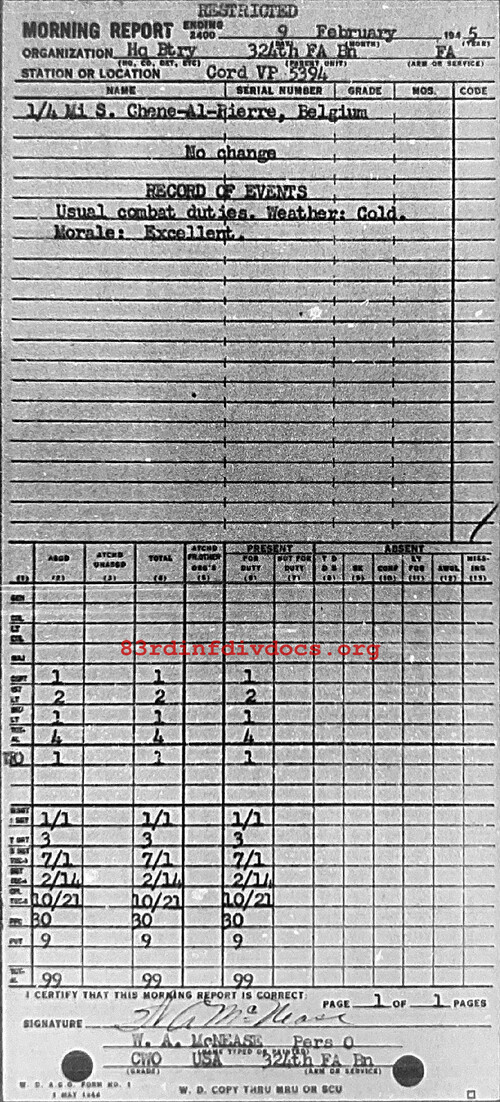 Usual combat duties. Weather: Cold. Morale: Excellent.