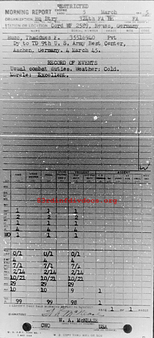 Usual combat duties. Weather: Cold. Morale: Excellent.